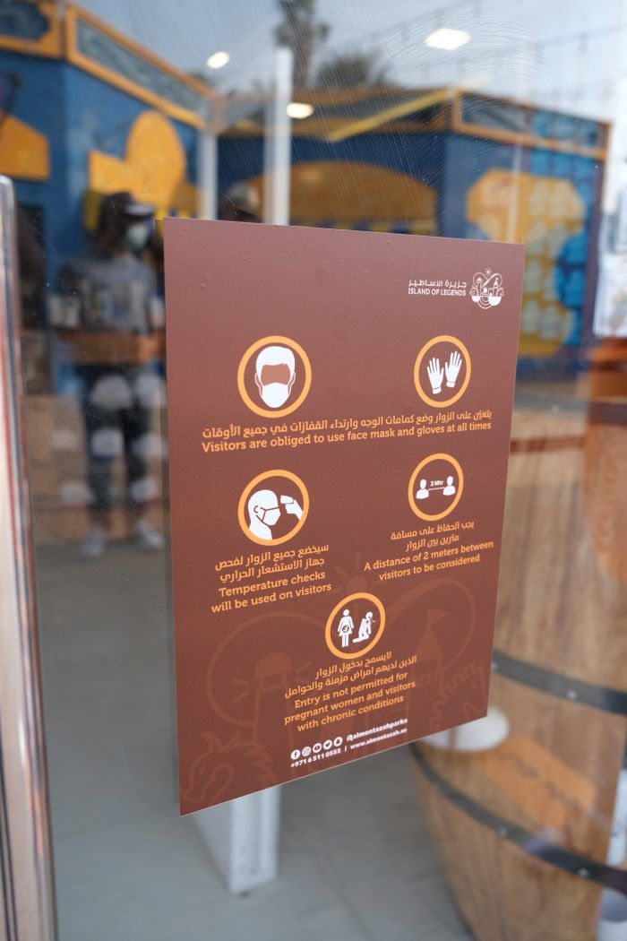 Precautionary measures undertaken by Shurooq at Al Montazah Parks include following physical distancing protocols, comprehensive sterilisation of the destination facilities and attractions, and reducing the number of visitors to the destination to 30 percent of its maximum capacity. Signs and stickers have been pasted on the floor next to each entertainment feature in the park to guide visitors to maintain a 2-metre distance from each other while waiting for their turns.